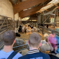 Dazu passt, dass die Mitglieder regelmäßig zu Hofarbeiten gebeten werden. Angebaut werden saisonal Gemüse und Früchte, bei „Entrup 119“ sogar nach den strengen Demeter Richtlinien. Dazu gibt es eine Bäckerei und Käserei. Für deren Rohstoff sorgt eine Schafherde. Gerade die Herde begeisterte zu dieser Jahreszeit, da von Anfang Januar bis jetzt eine Menge Nachwuchs auf die Welt gekommen war. Zahlreiche Lämmer im Alter von null bis drei Monaten belebten den Schafstall, schlummerten im Stroh und jagten nach den Eutern der Mutterschafe. Aber so niedlich die Schafe sind, auch Fleisch gehört zum Ernteanteil. Die wöchentlichen Rationen werden entweder am Hof oder freitags am Stand des Gärtnerhofes auf dem Ökologischen Wochenmarkt in Münster bereitgestellt.